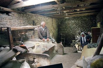 Οι φλοκάτες – βελέντζες των νοικοκυριών πλένονται ακόμα στα μαντάνια που βρίσκονται στην ομώνυμη θέση, 3,5 χιλιόμετρα περίπου από τον ασφαλτόδρομο.
