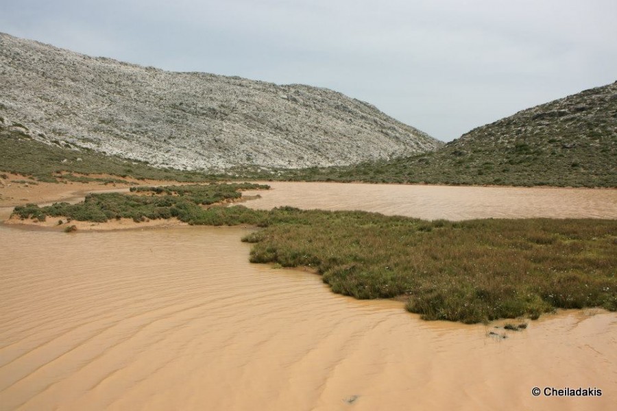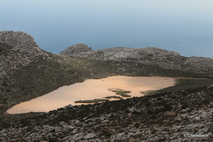 ού να καθρεπτίζει το γύρω γκρίζο των άδεντρων πλαγιών. Μετά τη λίμνη το μονοπάτι συνεχίζει με πέτρινο καλντερίμι μέχρι την πηγή Κεφαλοβρύσι και το μοναδικό φοινικόδασος του Αγίου Νικήτα. Αμέσως μετά τη λίμνη υπάρχει φυσικό μπαλκόνι με απίστευτη θέα στο φοινικόδασος και στα νότια παράλια των Αστερουσίων.