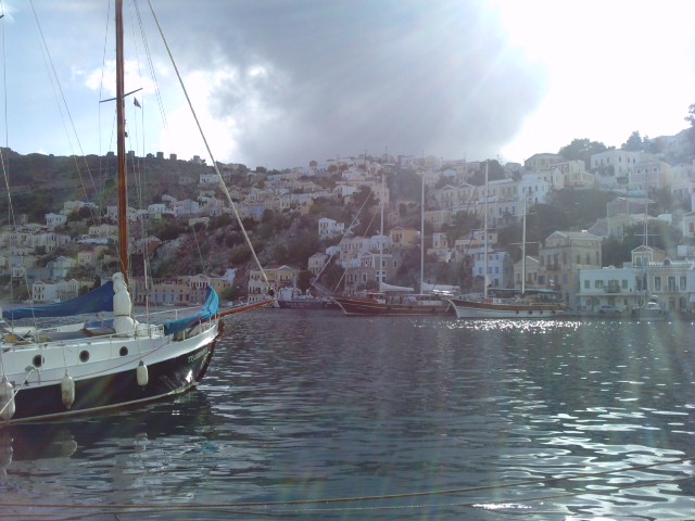 Τύποι Σπιτιών Στη Σύμη διακρίνουμε τρεις (3) τύπους σπιτιών, το μονό ή γείσο, το ανωκάτωγο ή δίπατο και τέλος το τρίπατο. Στο μονό ή γείσο σπίτι όλοι οι χώροι του σπιτιού, σάλα (σαλόνι), υπνοδωμάτιο, μαγερειό, καθώς και οι άλλοι βοηθητικοί χώροι, βρίσκονται στο ισόγειο. Το ανωκάτωγο ή δίπατο σπίτι, διαθέτει κατώι του οποίου η κάτοψη μοιάζει με το ισόγειο των μονών σπιτιών. Η επικοινωνία του ισογείου με τον πάνω όροφο γινόταν μέσω μιας εξωτερικής πέτρινης σκάλας.Το τρίπατο σπίτι δεν ήταν τόσο διαδεδομένο όσο το ανωκάτωγο. Σε αυτόν τον τύπο σπιτιού, το ισόγειο χρησιμοποιούνταν ως μαγαζί και οι δυο πάνω όροφοι αποτελούσαν ξεχωριστές πλήρεις οικίες.Υπάρχει ένας ακόμη τύπος σπιτιού που όμως δεν τον συναντούμε στο λιμάνι. Πρόκειται για το τετράγωνο ή αρχοντεμένο σπίτι. Σε αυτόν τον τύπο, το κατώι είναι μαγαζί ή αποθήκη και στο κέντρο του ορόφου υπάρχει μεγάλη σάλα. Υλικά Οι τοίχοι των σπιτιών είχαν μεγάλος πάχος. Κατασκευάζονταν από πέτρα αφού το συγκεκριμένο υλικό αφθονούσε στο νησί. Οι ντόπιοι τεχνίτες ήταν ιδιαίτερα επιδέξιοι στη συναρμολόγηση της πέτρας. Αντίθετα στα αρχοντόσπιτα χρησιμοποιήθηκε η ποτσουολάνα(μείγμα ασβεστοκονιάματος και θηραϊκής γης) που προερχόταν από τη Θήρα ή τη Νίσυρο. Οι στέγες των σπιτιών στο σύνολό τους είναι αετοειδείς και κεραμιδένιες με κεραμίδια φερμένα από τη Μασσαλία. Ένας προγενέστερος τύπος στέγασης είναι και ο επίπεδος με δώμα, που κατασκευαζόταν από πατελιά. Στο αέτωμα της κάθε στέγης υπάρχουν οι πολύ γνωστοί φεγγίτες ή αλλιώς τα «μάτια του βοδιού». Αυτοί κατασκευάζονταν από πέτρα, μάρμαρο, σίδερο ή γύψο, ενώ για τις σκάλες, τα μπαλκόνια και τα φουρούσια χρησιμοποιούσαν μάρμαρο φερμένο από την Πάρο ή την Πεντέλη. Η ξυλεία που χρησιμοποιούσαν στις πόρτες και στα παράθυρα την προμηθεύονταν από την Τεργέστη, καθώς και από τα γειτονικά μικρασιατικά παράλια. Το είδος του ξύλου που προερχόταν από την Τουρκία λεγόταν κατράνι και ήταν ιδιαίτερα ανθεκτικό στις καιρικές συνθήκες. Τις πρώτες ύλες τις προμηθεύονταν από τη Σμύρνη και την Πόλη. Εκτεταμένη ήταν και η χρήση του ασβέστη που με αυτόν άσπριζαν τα σπίτια.