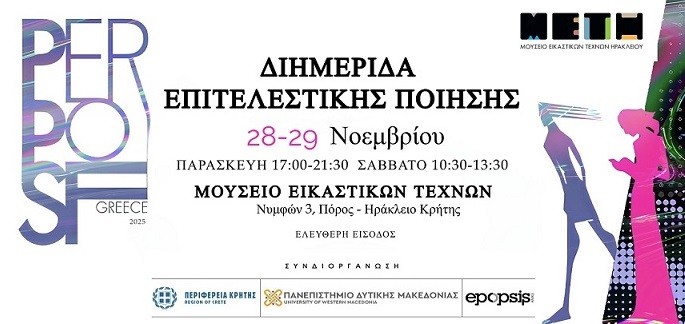 ΣΑΣ ΚΑΛΟΥΜΕ ΣΤΟ ΜΕΤΗ, ΣΤΗ ΔΙΗΜΕΡΙΔΑ ΕΠΙΤΕΛΕΣΤΙΚΗΣ ΠΟΙΗΣΗΣ,ΠΑΡΑΣΚΕΥΗ ΚΑΙ ΣΑΒΒΑΤΟ 28-29 ΝΟΕΜΒΡΙΟΥ, ΔΝΣΗ ΝΥΜΦΩΝ 3, ΠΟΡΟΣ. ΕΙΣΟΔΟΣ ΕΛΕΥΘΕΡΗ.