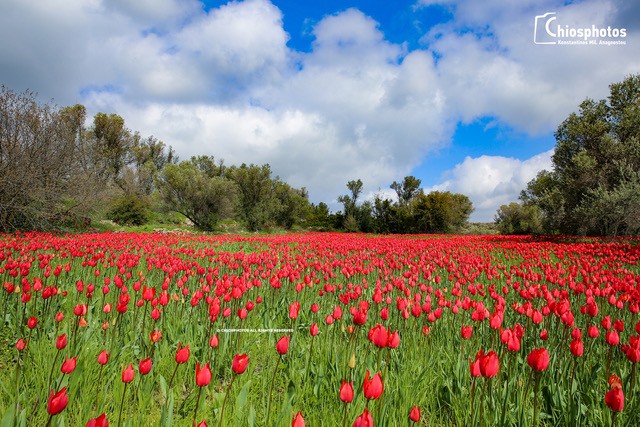 Η Χίος φημίζεται διεθνώς για την χλωρίδα και τον πλούτο των άγριων λουλουδιών της καθώς έχει μία μεγάλη ποικιλία από ορχιδέες που βρίσκονται διάσπαρτες στο νησί αλλά και άγριες τουλίπες που κάθε χρόνο το μήνα Μάρτιο και Απρίλιο πλημμυρίζουν με χρώμα τις γεωργικές καλλιέργειες κυρίως στο κεντρικό και νοτιοανατολικό μέρος του νησιού.