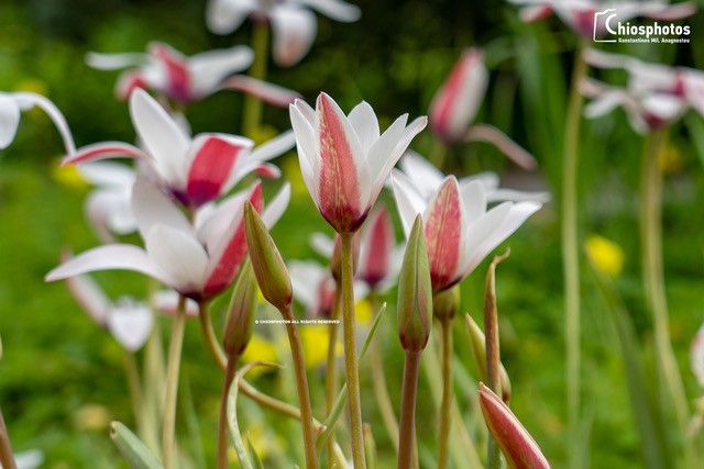 Οι τουλίπες της Χίου ή αλλιώς “Λαλάδες” όπως ονομάζονται από τους ντόπιους αποτελούν μέρος του γένους Tulipa η οποία εκτείνεται από την κεντρική Ασία έως τις νότιες-κεντρικές και ανατολικές περιοχές της Ευρώπης. Η ύπαρξη τους στη Χίο οφείλεται στη Δυτική εξάπλωση του είδους από την Περσία πριν από εκατομμύρια χρόνια. Το γένος αριθμεί περισσότερα από 100 είδη, 15 από τα οποία φύονται στην Ελλάδα. Η ονομασία τους ” Λαλάδες ” προέρχεται από το ” lale ” που είναι η περσική ονομασία της Τουλίπας, η οποία πέρασε μέσω των Τουρκικών στη Χιώτικη διάλεκτο. Στη Χίο φύονται τέσσερα είδη άγριας τουλίπας (Tulipa praecox, Tulipa agenensis, Tulipa clusiana και Tulipa undulatifolia). Η τουλίπα που κοκκινίζει τα λιβάδια της Χίου την άνοιξη είναι η Tulipa praecox, ενώ το ένα από τα τέσσερα είδη, που είναι και το πιο σπάνιο έχει ριγέ λευκά-κόκκινα άνθη. Τα άνθη τους δεν διατηρούνται πάνω από 7 με 10 μέρες.