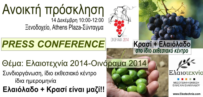 Αποφασίσαμε την διοργάνωση των δυο εκθέσεων για να συμβάλλουμε με αυτήν την κίνηση στην τόνωση της ελληνικής ανταγωνιστικότητας, στην ανάδειξη των συνεργασιών με περεταίρω κέρδος για επιχειρήσεις και επαγγελματίες των κλάδων του ελαιολάδου και του κρασιού.