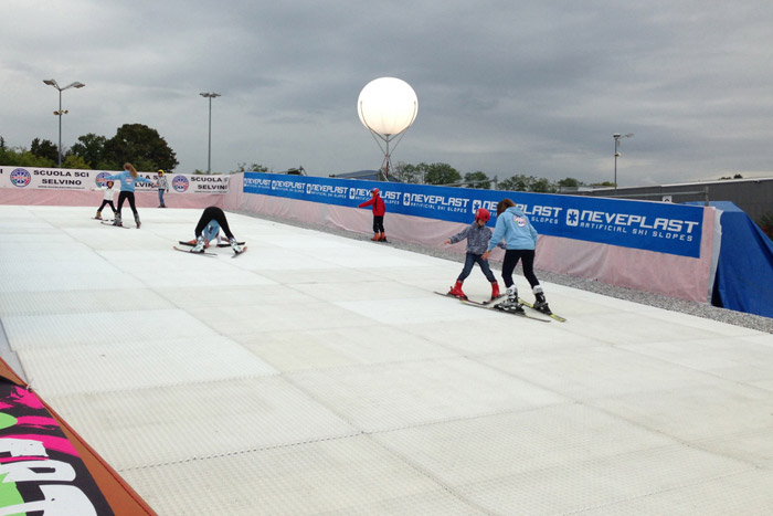 Κατασκευασμένη από το ασφαλέστερο και πιο λειτουργικό υλικό του κόσμου (της εταιρίας Neveplast), θα δώσει την ευκαιρία σε μικρούς και μεγάλους να γνωρίσουν τα χειμερινά σπορ και να κάνουν τα πρώτα τους μαθήματα σκι και snowboard, χωρίς να πάνε στο βουνό! Στην πίστα, μήκους 45 μέτρων και πλάτους 16 μέτρων, θα υπάρχει επαρκής εξοπλισμός -μπότες και πέδιλα- σε όλα τα μέτρα, καθώς και έμπειροι αθλητές και προπονητές που θα κάνουν μαθήματα σκι στα παιδιά.