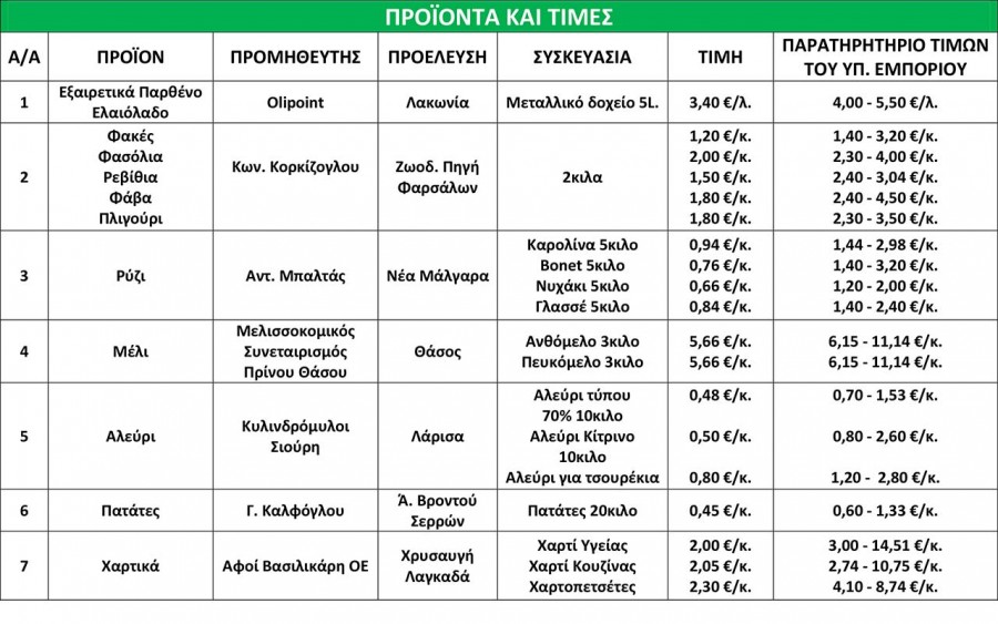 Σύμφωνα με τον κατάλογο των προϊόντων, ο οποίος είναι εμπλουτισμένος με νέα αγαθά, όπως φάβα, πλιγούρι και αλεύρι ειδικό για τσουρέκια, καθώς και χαρτικά, στους καταναλωτές θα διατεθούν: