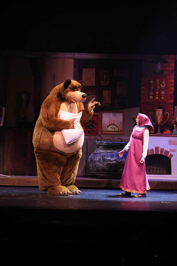 «Η Μάσα και ο Αρκούδος, μια μεγάλη γιορτή» η επίσημη θεατρική παράσταση, ζωντανεύει τον μαγικό κόσμο της παγκόσμιας επιτυχημένης σειράς κινουμένων σχεδίων. Με τα αυθεντικά κοστούμια του εξωτερικού.