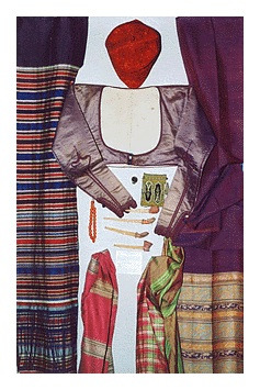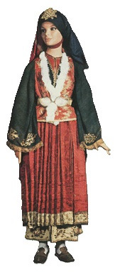 Το βαρύ κόκκινο μεταξωτό κεντημένο πουκάμισο με την βελούδινη χρυσοκεντημένη ζώνη και τα ασημένια κλειδωτήρια, τις ασημένιες “κρέμασες” με τα φυλαχτά επάνω, τον ολοκέντητο μαχραμά για το στολισμό του κεφαλιού τους, τις τόσο σπάνιες και ιδιόμορφες συλλογές τα “τσεμπεράκια”, τους ξεχωριστής χάρης και τέχνης κεφαλόδεσμους με τα αντιβασκανικά σύμβολα κεντημένα επάνω, είτε με χρυσόνημα, είτε με την τεχνική των “γραφτών” με πολύχρωμες κλωστές.
