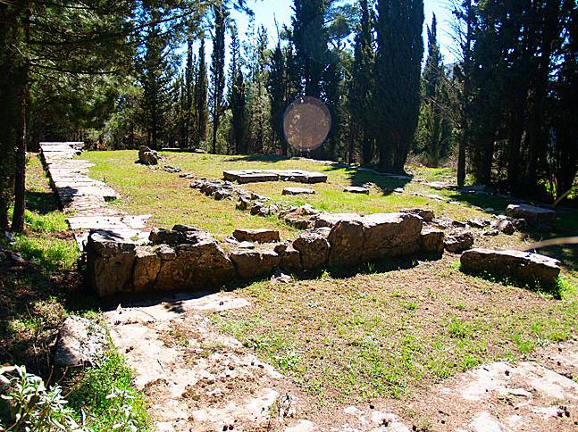 Στον κείμενο λόφο οι ανασκαφές έφεραν στο φως τη θεμελίωση 4 σπουδαίων ναών. Υπάρχουν σωζόμενα ίχνη του οχυρωματικού περιβόλου της ακρόπολης και έχουν βρεθεί και δύο σπουδαία αγάλματα, του Πάλλαντα και του Εύανδρου στην κάτω πόλη. Ο Παυσανίας διασώζει την ύπαρξη του ιερού των Καθαρών Θεών. Και Καθαροί, γιατί δεν δέχονται πια αιματηρές θυσίες. Τα ήθη έχουν πια εξευγενιστεί και σβήνει στα χρόνια του Παυσανία το πολεμικό ήθος που δημιούργησε το μύθο των αρχέγονων μυστικών θυσιών.