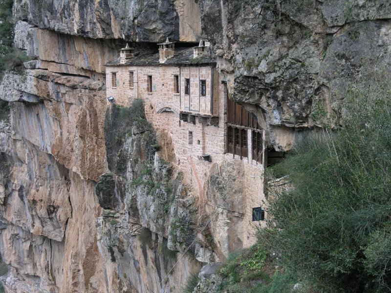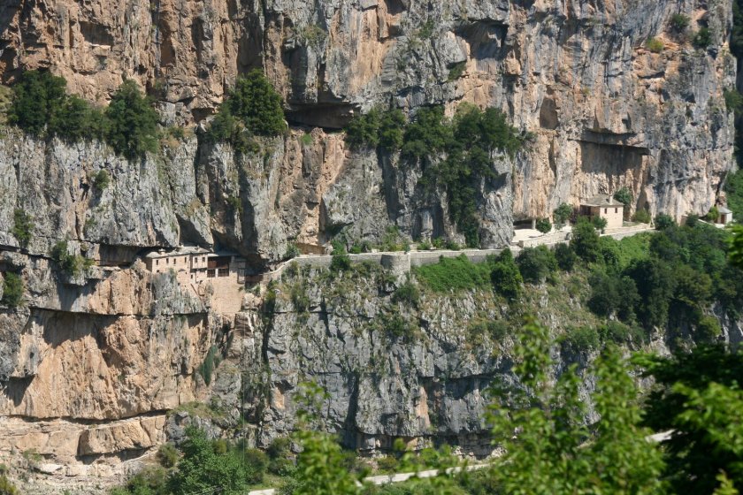 Ο Σεραφείμ Βυζάντιος γράφει ότι το μοναστήρι χτίστηκε το 1212 από κάποιον αρχιεπίσκοπο Γρηγόριο. Το καθολικό της μονής βρίσκεται σε επίμηκες σπήλαιο και είναι μονόχωρο κτίσμα με τρούλο, ενώ στο εσωτερικό του υπάρχουν τοιχογραφίες, οι οποίες έχουν γίνει πιθανόν τον 17ο αιώνα. Σήμερα σώζονται το καθολικό, μικρό πέτρινο κτίριο που χρησίμευε ως στάβλος και τέσσερα κελιά. Σε ένα από τα κελιά του πρώτου ορόφου υπάρχει ξύλινο ντουλάπι – πόρτα που οδηγεί σε κρύπτη. Στην βάση του βράχου υπάρχει πηγή. Το σπήλαιο του μοναστηριού έχει μήκος 270 μέτρα.
