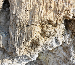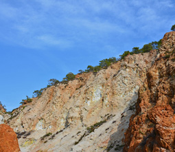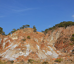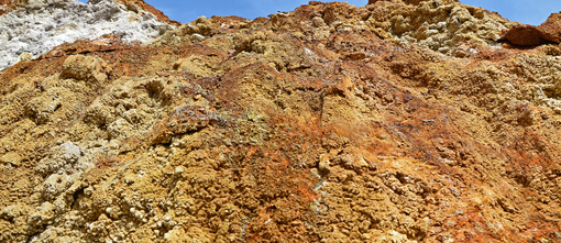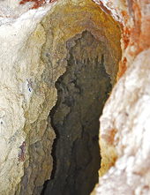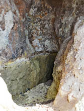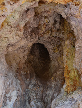 Μετά από 800 μ πορείας στο ρέμα, φτάνουμε στο πιο εντυπωσιακό σημείο της διαδρομής. Το ρέμα στενεύει, οι πλαγιές του αποτελούνται από ηφαιστειακά πετρώματα και λίγα μέτρα αριστερά μας υπάρχουν στοές στο έδαφος από τις οποίες εκλύονται θερμά αέρια (TRYPES). Οδεύοντας στο φαράγγι, συναντάμε πολλές οπές, μικρές και μεγάλες, από τις οποίες εκλύονται θερμά αέρια. Στα σημεία αυτά τα πετρώματα εμφανίζουν εντυπωσιακούς σχηματισμούς και χρώματα. Η δυσοσμία βέβαια είναι κατά τόπους πολύ έντονη…