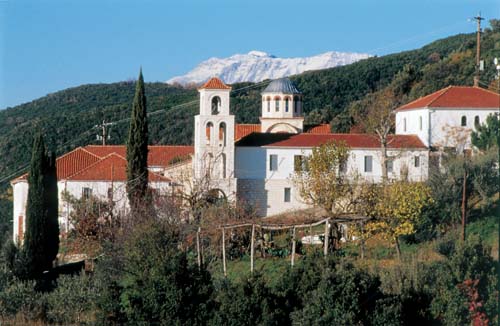 Το 1856 ξαναχτίστηκαν τα κελλιά καθώς και ο μικρός ναός -μονόκλιτη σταυρεπίστεγη θολωτή βασιλική με τρούλλο και χορούς. Αυτός ο ναός επειδή είχε υποστεί ρωγμές απ’ τους σεισμούς, κατεδαφίστηκε το 1976 και στη θέση του ανεγέρθηκε με τη φροντίδα του μακαριστού γέροντα πατρός Μητροφάνη, νέος μεγάλος σταυροειδής με τρούλλο. Πρόκειται για επιβλητικότατο κτίσμα του οποίου η τέχνη και η εξωτερική ποικιλομορφία δίνουν στο σύνολο λαμπρότητα και χάρη. Μπορεί βέβαια – σα νέο κτίσμα που είναι – να μην έχει την υποβλητικότητα του προηγούμενου ναού, όμως “δένει” τόσο αρμονικά με τα λοιπά κτίσματα και το τοπίο, ώστε να μη χάνει ο χώρος καθόλου απ’ την παλιά μυσταγωγική του ατμόσφαιρα. Η παρακολούθηση του όρθρου κάτω απ’ τους θόλους του με συντροφιά τους μελωδικούς ήχους των γυναικείων φωνών μεσ’ στη νυχτερινή σιγαλιά, προσφέρει στον επισκέπτη – προσκυνητή μια ανεπανάληπτη εμπειρία.